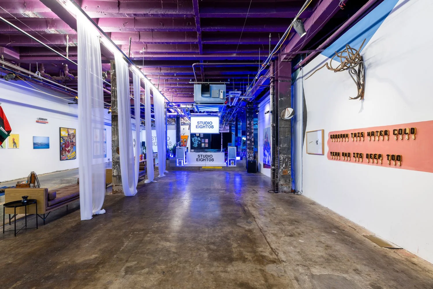 Each environment is designed for content capture, conversation, and experience, allowing teams to select the setting that best supports the moment. A rotating art program anchors the gallery space, where a connected lounge provides a natural setting for hosting, reception, and transition between live moments. The result is a creative campus that feels historic, intentional, and highly adaptable.